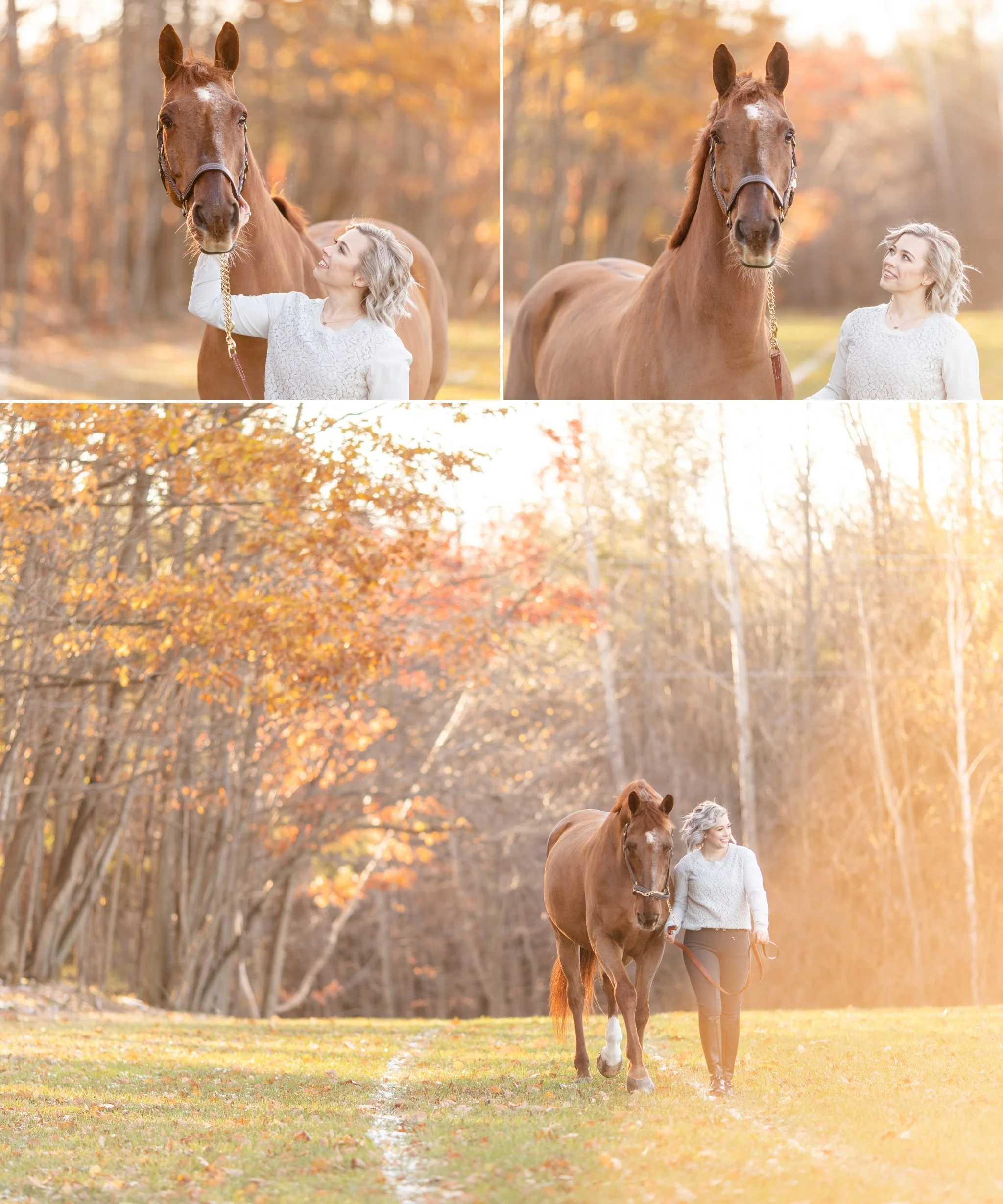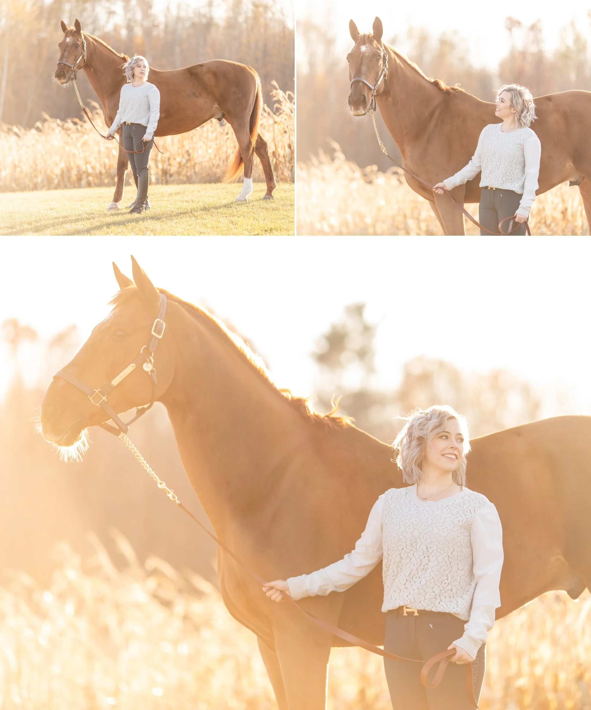 Our session took place at the lovely Crown Point Farm in Bonduel, Wisconsin, a dressage equestrian center. The day, while a little chilly, was sunny, making for the perfect day to snap some pictures. Angela of Angela Marie Makeup Artistry was onsite to deliver her talent in the form of hair and makeup, and Meggie—who is already stunning—was simply gorgeous, completely lighting up the camera.