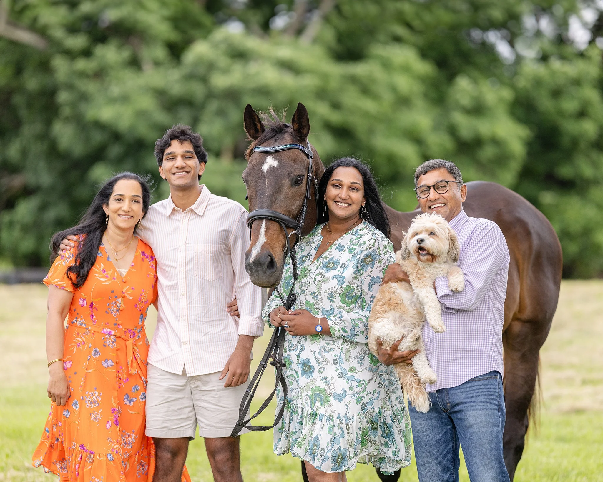 Adding to the charm of the morning, Neha's parents and brother joined us for an updated family photoshoot. It was heartwarming to see the entire family interact with Zeke, sharing in Neha's passion for her equine companion. The laughter and joy were palpable, and I was able to capture moments that truly reflect their close-knit bond.