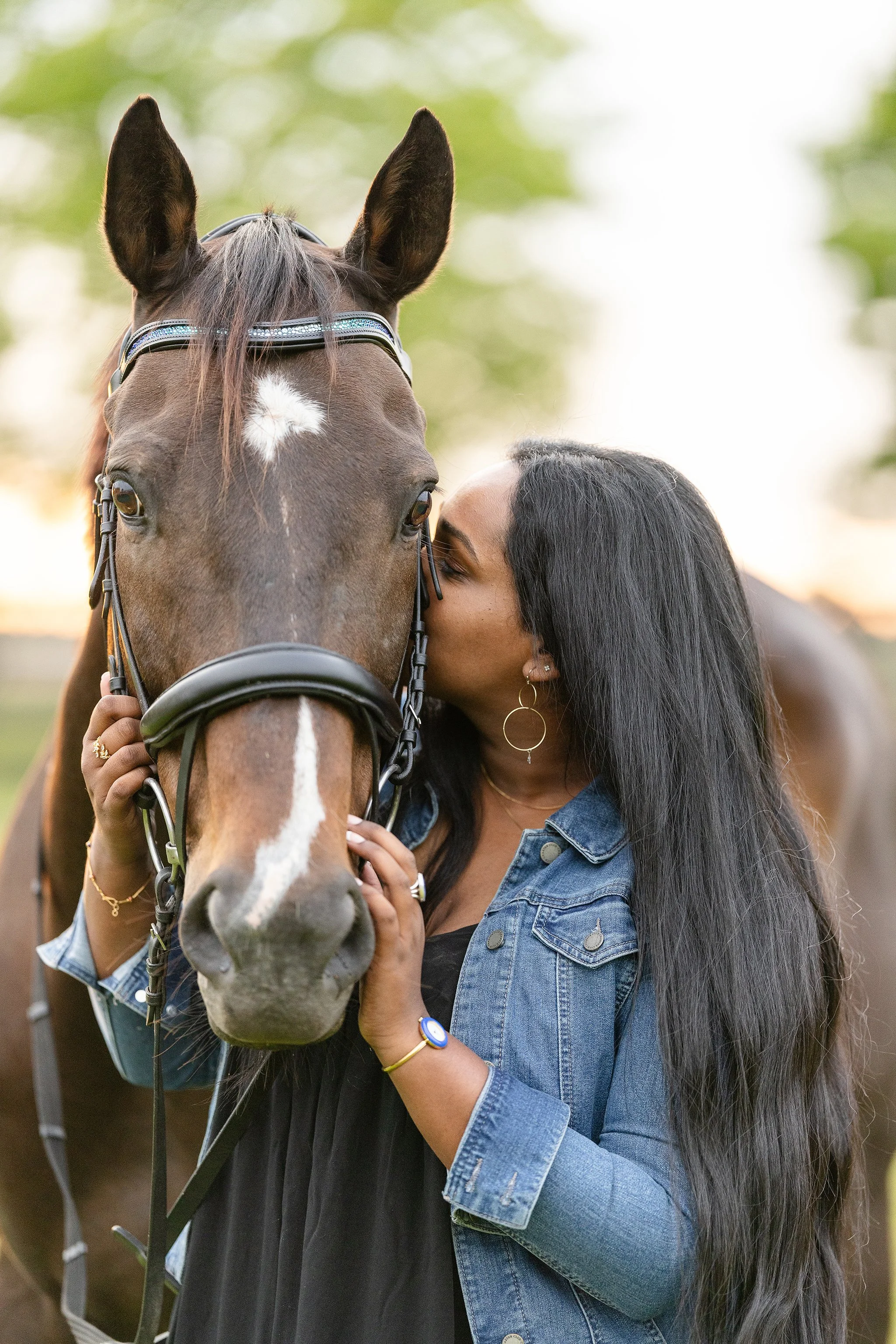 From the moment I arrived, it was clear that Neha and Zeke share an extraordinary bond. Zeke, with his gentle eyes and graceful demeanor, seemed to understand every word Neha spoke. Capturing their connection was an absolute joy. The way Neha's face lit up with every nuzzle from Zeke, and the way Zeke's ears pricked forward attentively as Neha whispered to him, made for some truly impactful photographs.
