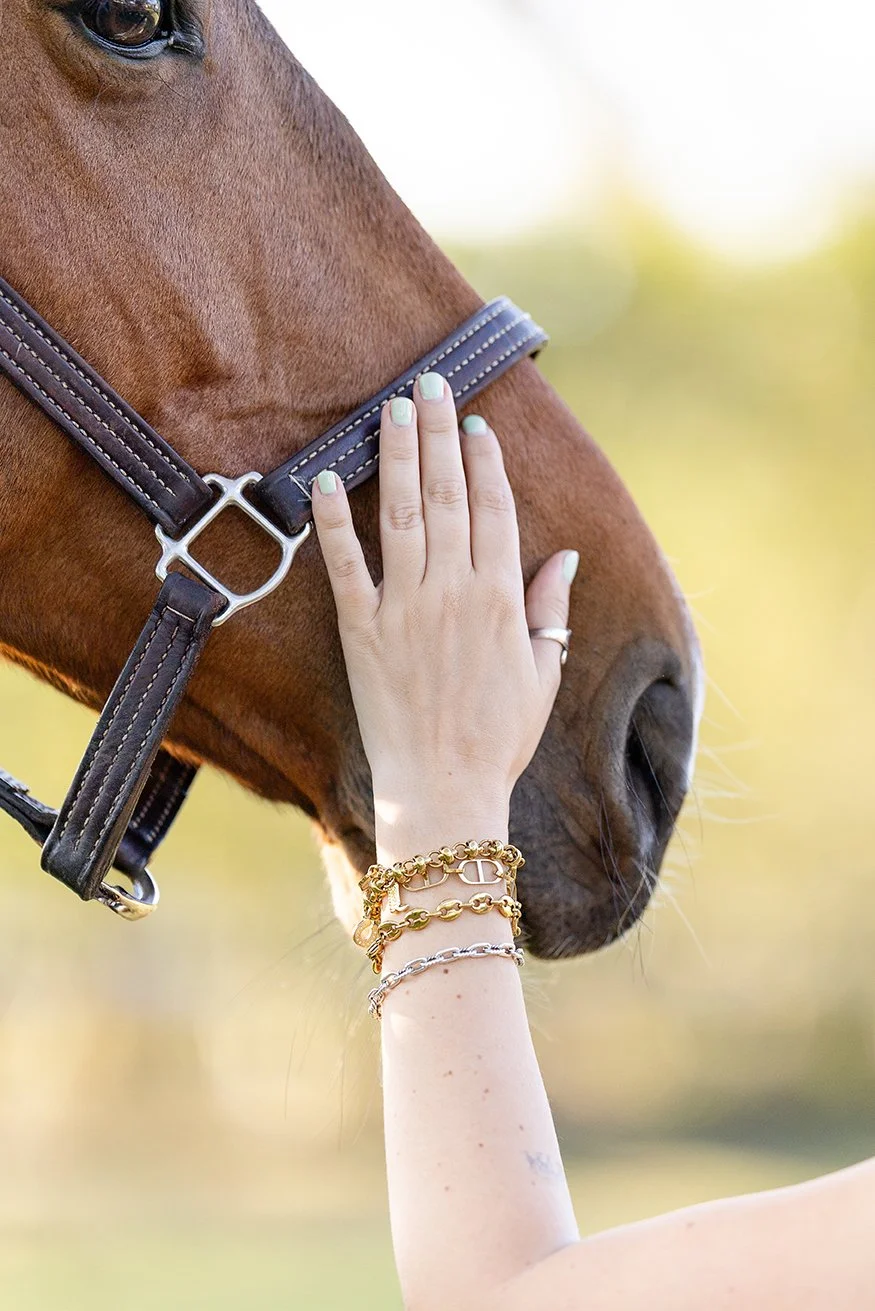 While you’re selecting your outfit, don’t forget to prepare your horse as well! A well-groomed coat, neatly trimmed mane, and clean tack can elevate the overall aesthetic of your session. If your horse wears a halter, a clean leather halter or a sleek, well-fitted bridle is often the best choice for a polished look.